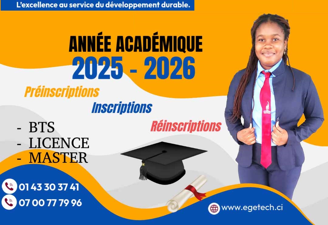 L’Ecole de Gestion et de Technologies (EGETECH) est un Etablissement Privé d’Enseignement Supérieur Agréé par l’Etat par la Décision N°1205/ MESRS/ DGES/ DESUP du 24 avril 2020.